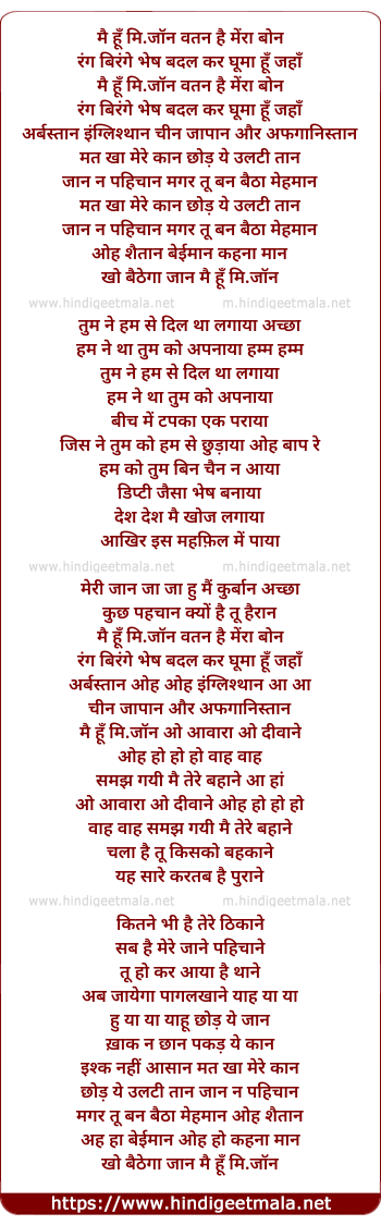 Poetic Translation - Lyrics of Main Hoon Mr. John