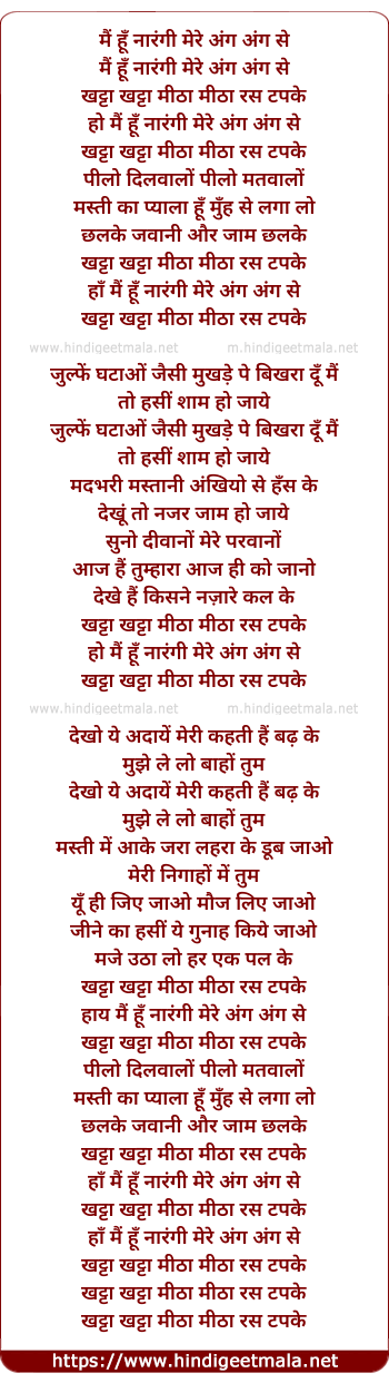 Lyrics of Main Hoon Narangi - मैं हूँ नारंगी मेरे अंग अंग से