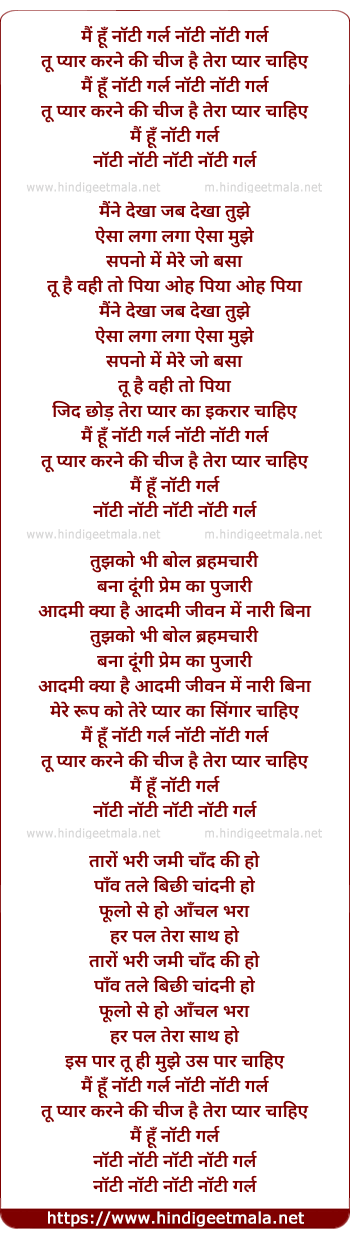 Poetic Translation - Lyrics of Main Hu Naughty Girl - मैं हूँ नॉटी गर्ल