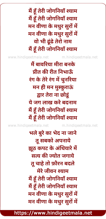 Lyrics of Main Hu Teri Joganiya - मैं हूँ तेरी जोगनियाँ