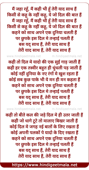 mai jaha rahu, mai kahi bhi hu teri yaad sath hai