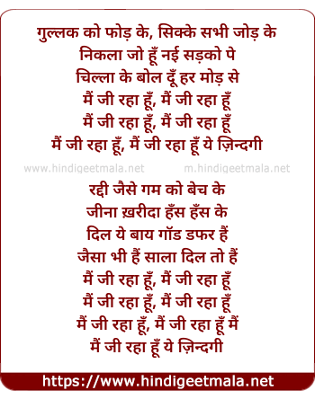 Lyrics of Main Jee Raha Hoon - मैं जी रहा हूँ