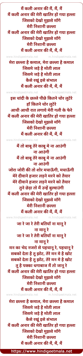 Lyrics of Main Kali Anaar Ki - मैं कली अनार की