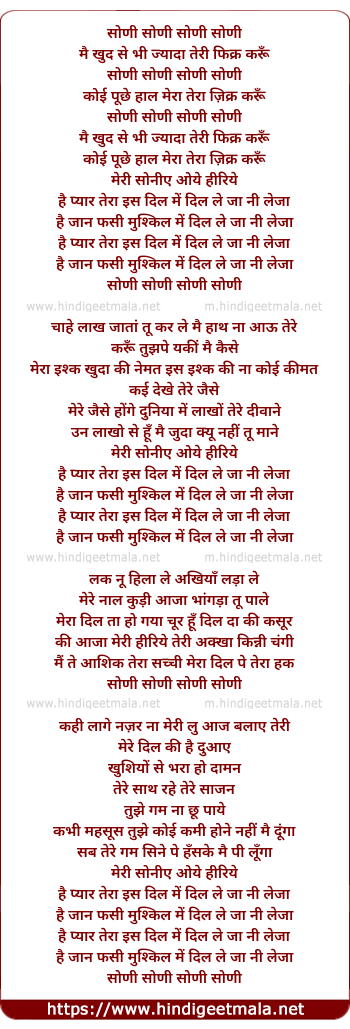 Main Khud Se Bhi Jyada Teri Fikar Karu - सोणी सोणी सोणी सोणी