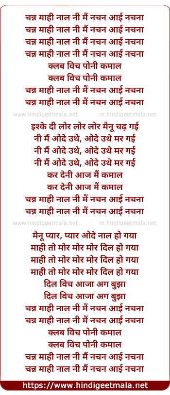 Lyrics of Main Nachna - चन्न माही नाल नी मैं नचन आई नचना
