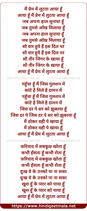 Lyrics of Main Prem Mein Lutata Aaya Hun - मैं प्रेम में लुटता आया हूँ