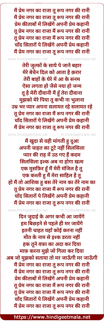 main prem nagar ka raja tu roop nagar ki rani