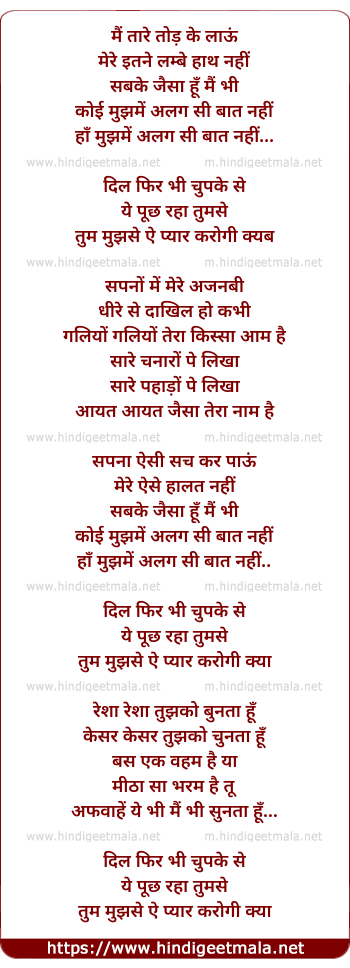 Lyrics of Main Taare Tod Ke Laaoon - मैं तारे तोड़ के लाऊँ
