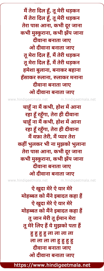 Lyrics of Main Tera Dil Hu - मैं तेरा दिल हूँ