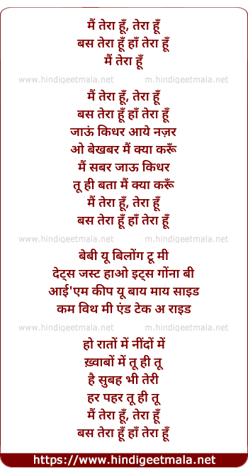 Lyrics of Main Tera Hu - मैं तेरा हूँ