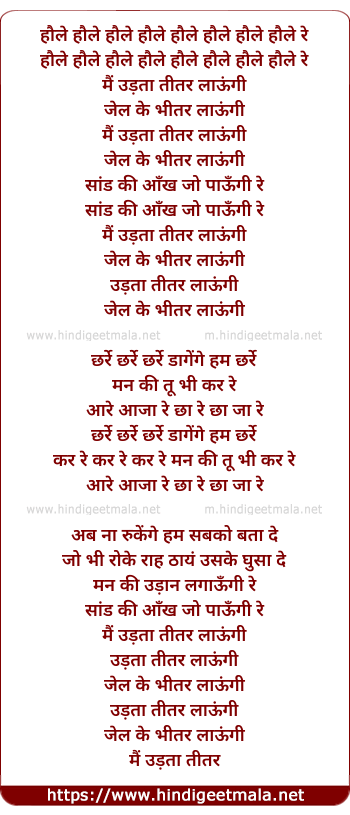 Lyrics of Main Udta Teetar Laungi Re - मैं उड़ता तीतर लाऊंगी रे
