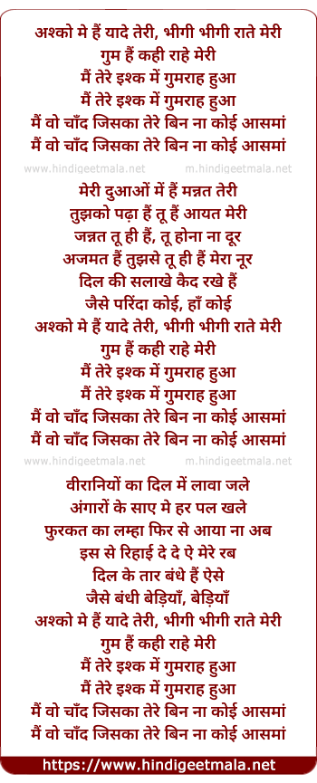 ashko me hai yaade teri, bhigi bhigi raate meri
