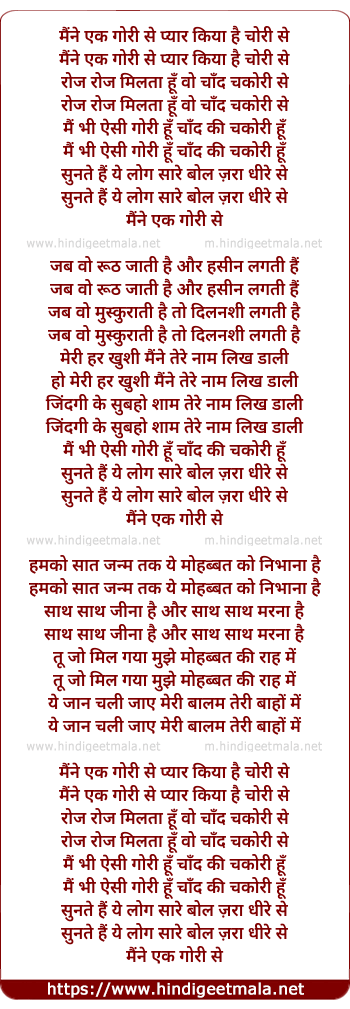 Lyrics of Maine Ek Gori Se - मैंने एक गोरी से
