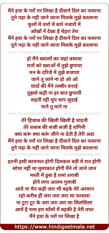 Lyrics of Maine Hawa Ke Paro Pe (2)