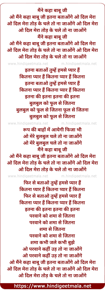 Lyrics of Maine Kaha Babu Ji Itna Bataoge - मैंने कहा बाबू जी इतना बताओगे