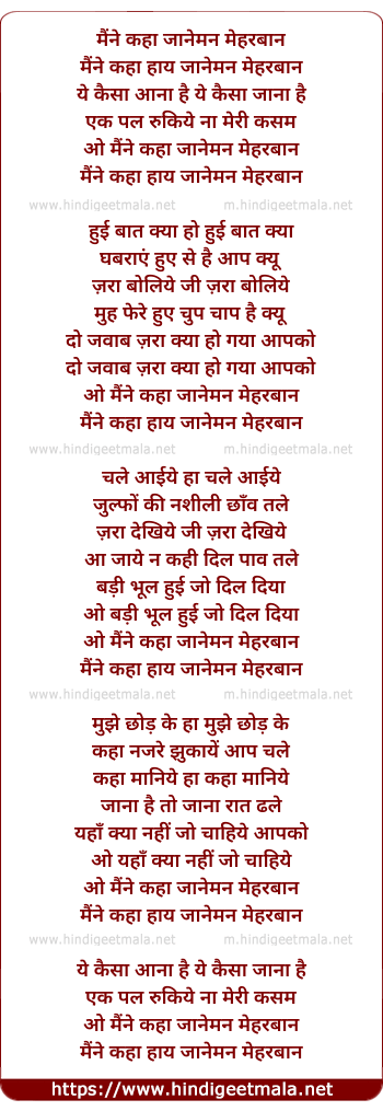 Lyrics of Maine Kaha Jaaneman Meharbaan - मैंने कहा जानेमन मेहरबान
