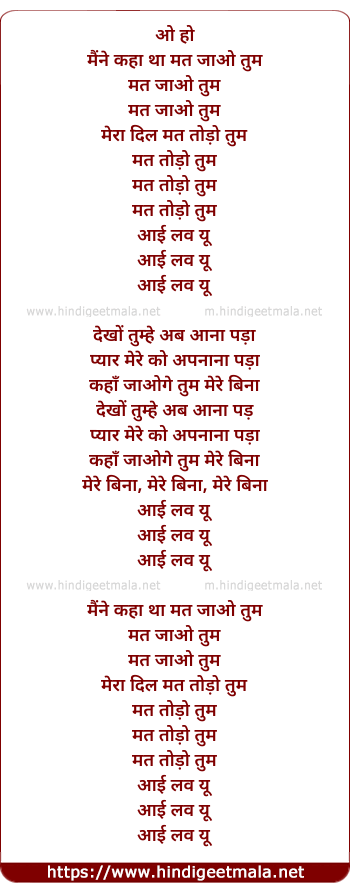 Lyrics of Maine Kaha Tha Mat Jao Tum - मैंने कहा था मत जाओ तुम