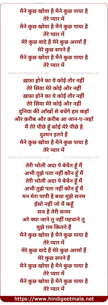 Lyrics of Maine Kuch Khoya Hai Maine Kuch Paya Hai - मैने कुछ खोया है मैने कुछ पाया है
