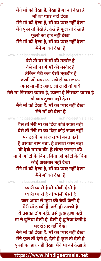 Lyrics of Maine Maa Ko Dekha Hai - मैंने माँ को देखा है