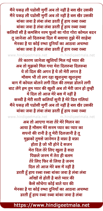Lyrics of Maine Pakadli Padosi - मैंने पकड़ली पडोसी