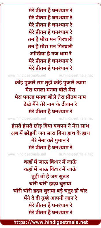 Lyrics of Mere Preetam Hai Ghanshyam Re - मेरे प्रीतम है घनश्याम रे