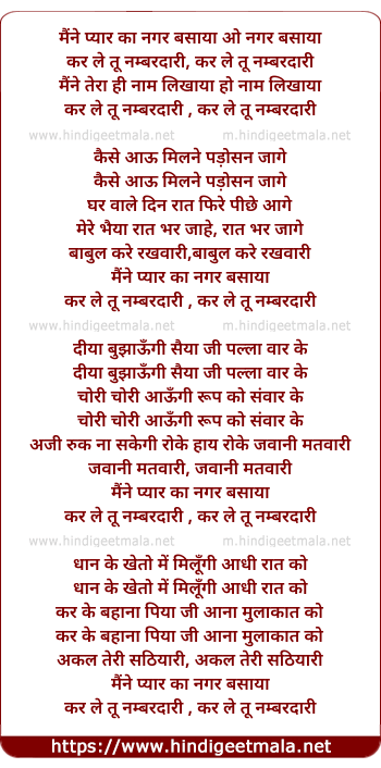 Lyrics of Maine Pyar Ka Nagar Basaya - मैंने प्यार का नगर बसाया
