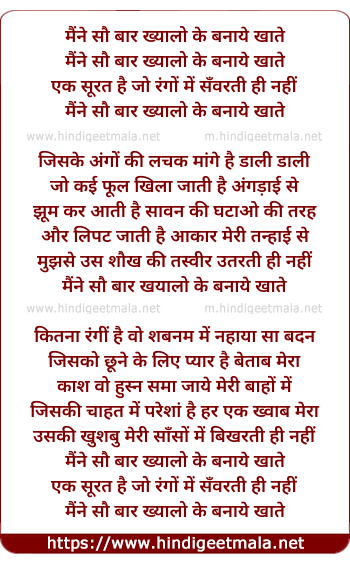 Lyrics of Maine Sau Baar Khayalo Ke - मैंने सौ बार ख्यालो के