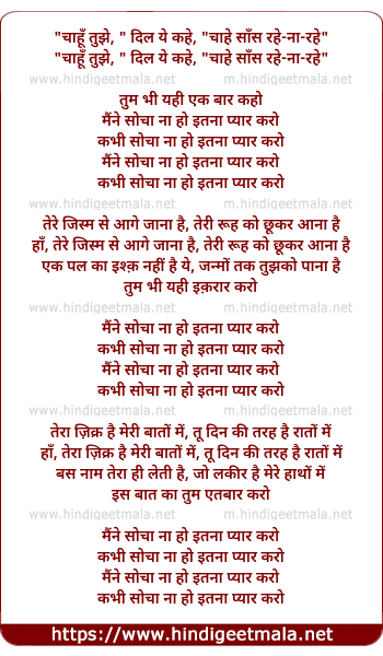 Lyrics of Maine Socha Na Ho Itna Pyaar Karo - मैंने सोचा ना हो इतना प्यार करो