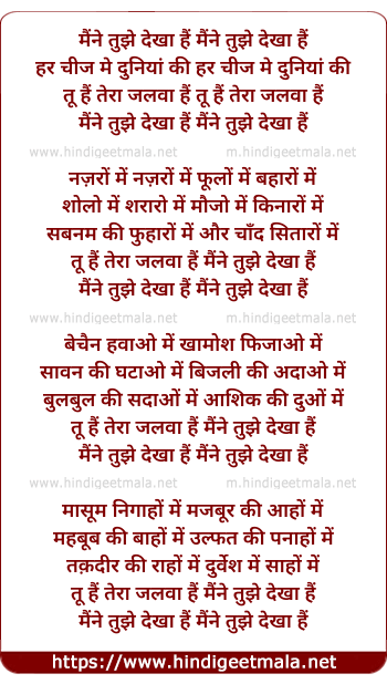 Lyrics of Maine Tujhe Dekha Hai - मैंने तुझे देखा हैं