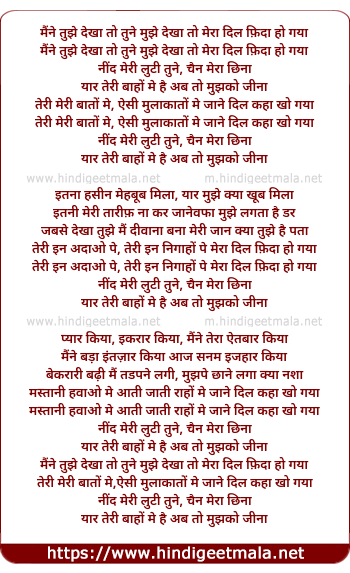 Lyrics of Maine Tujhe Dekha Toh Tune Mujhe Dekha - मैंने तुझे देखा तो तुने मुझे देखा