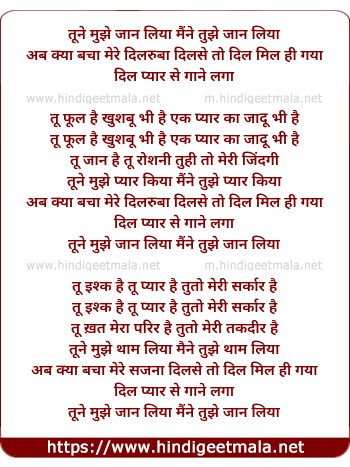 Lyrics of Maine Tujhe Jaan Liya - Male