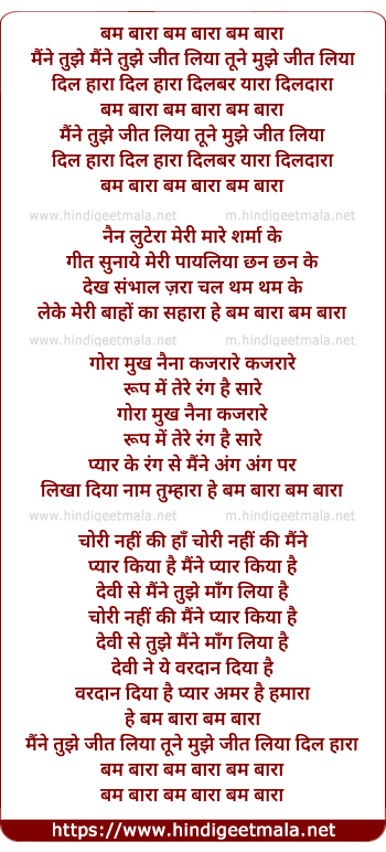 leke meri baho ka sahara hey bam bara bam bara