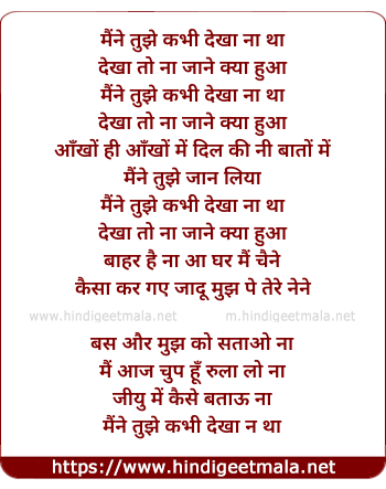 Lyrics of Maine Tujhe Kabhi Dekha Nahi - मैंने तुझे कभी देखा नहीं