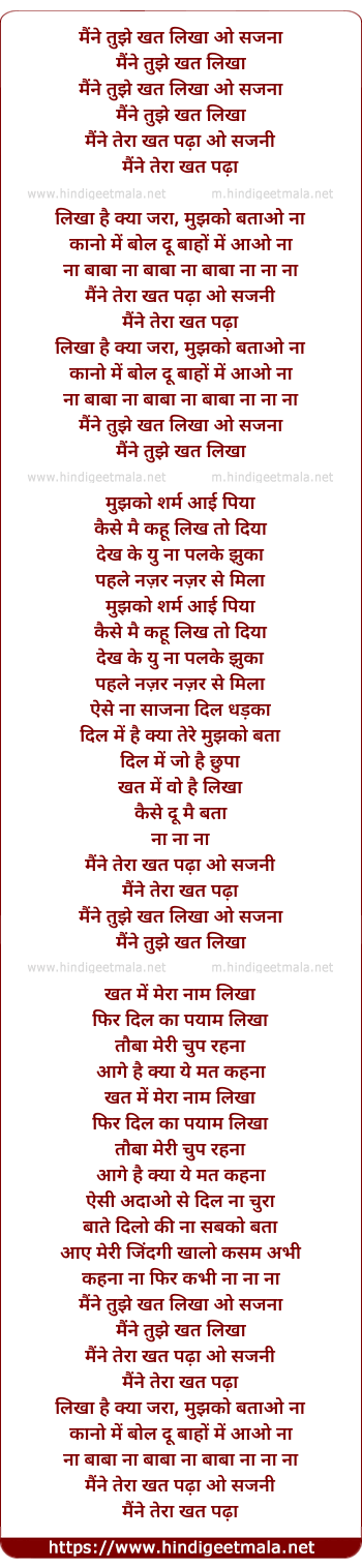 Lyrics of Maine Tujhe Khat Likha O Sajna - मैंने तुझे खत लिखा ओ सजना