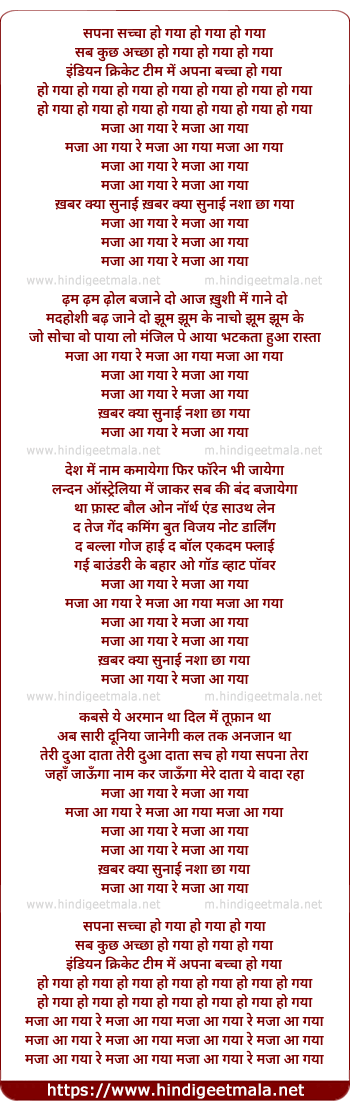 Lyrics of Maja Aa Gaya Re Maja Aa Gaya - मजा आ गया रे मजा आ गया