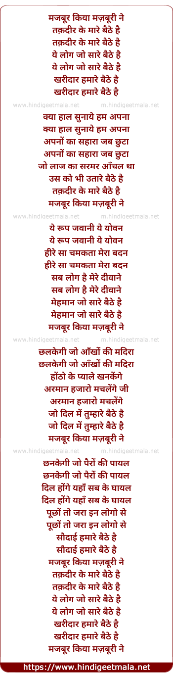 Lyrics of Majboor Kiya Majboori Ne - मजबूर किया मज़बूरी ने