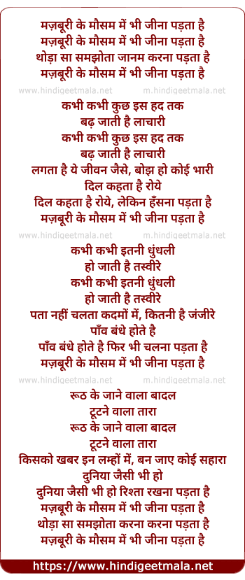 Lyrics of Majboori Ke Mausam Me - मज़बूरी के मौसम में भी जीना पड़ता है