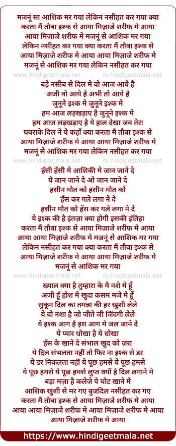 aaya aaya mijaje shrif me majnu sa aashik mar gaya