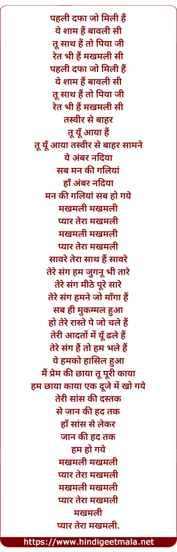 Lyrics of Makhmali Makhmali Pyar Tera Makhmali - मखमली मखमली प्यार तेरा मखमली