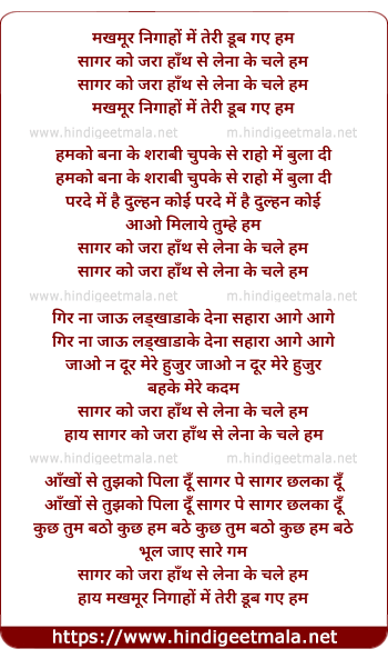 Lyrics of Makhmur Nigaho Me Teri - मखमूर निगाहों में तेरी