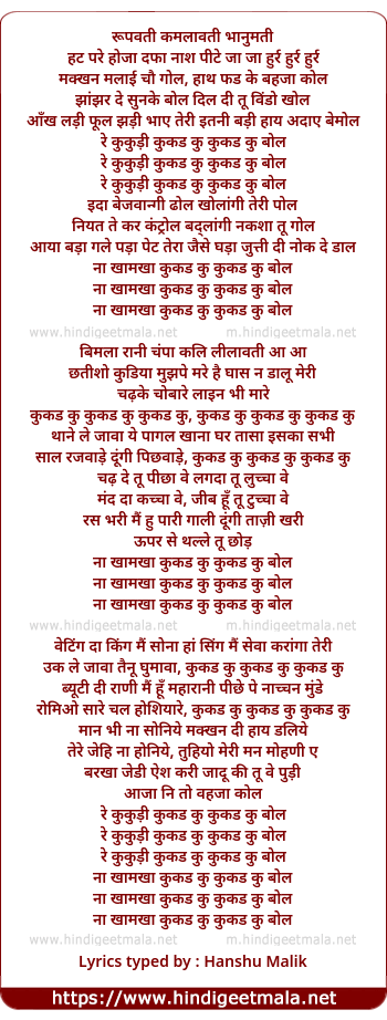Lyrics of Makkhan Malai Cho Gol - मक्खन मलाई चौ गोल