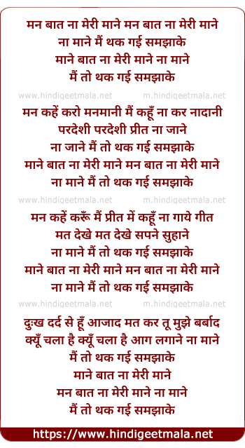 Lyrics of Man Baat Na Meri Maane - मन बात ना मेरी माने