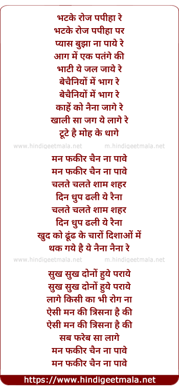 Lyrics of Man Fakeera Chain Naa Pave - मन फकीरा चैन ना पावे