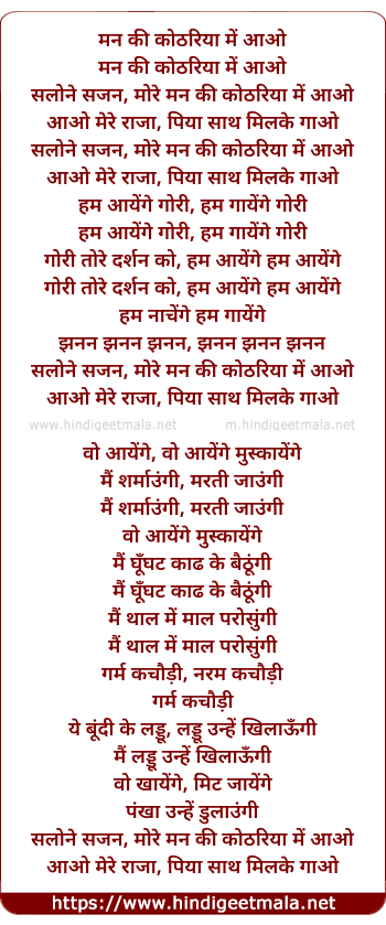 Lyrics of Man Ki Kothariya Me Aao Salone Sajan - मन की कोठरिया में आओ