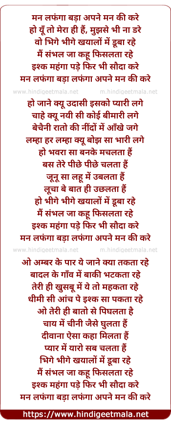 Lyrics of Man Lafanga Bada - मन लफंगा बड़ा
