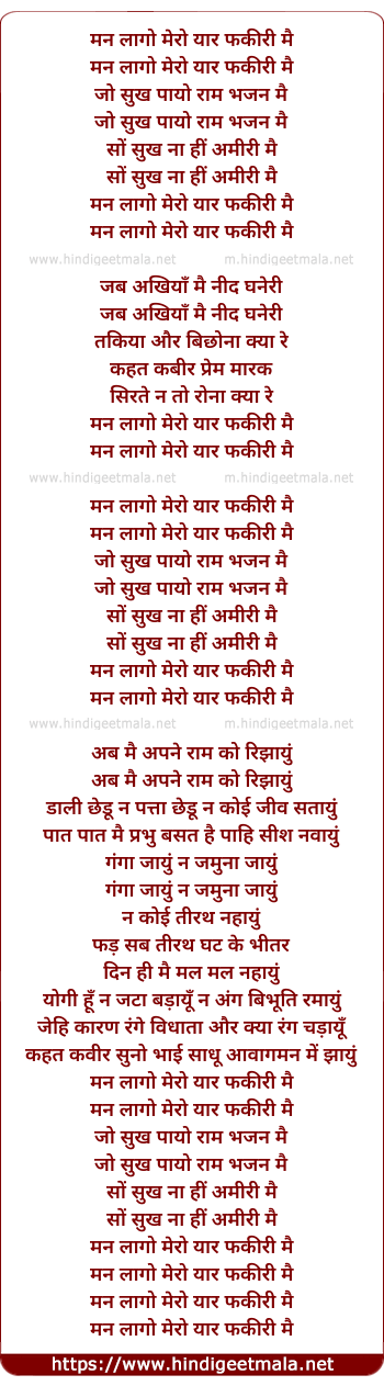 Lyrics of Man Lago Mera Yaar - मन लागो मेरो यार