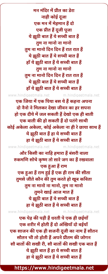 Lyrics of Man Mandir Me Preet Ka - मन मंदिर में प्रीत का