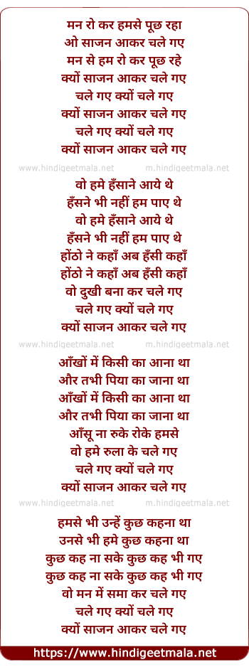 Lyrics of Man Ro Kar Humse Puch Raha - मन रो कर हमसे पूछ रहा