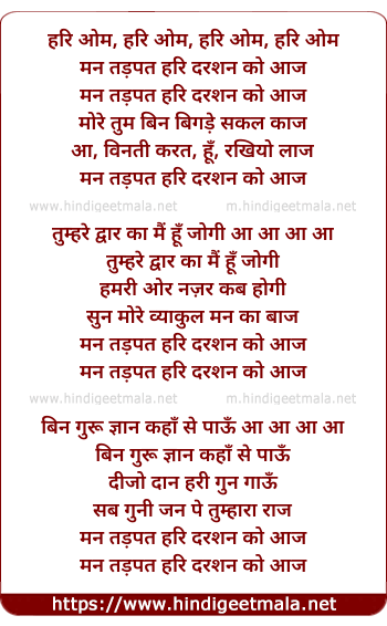 Lyrics of Man Tadpat Hari Darshan Ko Aaj - मन तड़पत हरि दर्शन को आज