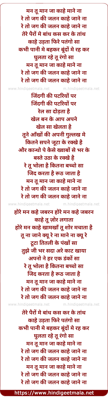 Lyrics of Man Tu Maan Ja - मन तू मान जा